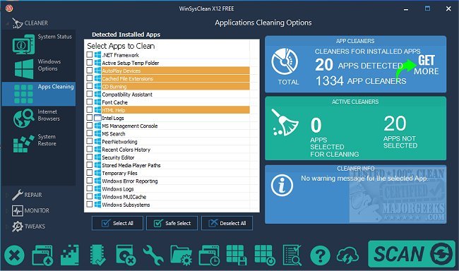 You can choose from many cleaning options or let WinSysClean do it for you.