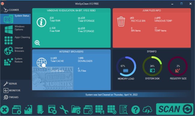 WinSysClean is a fully automated Windows system cleaner. Video tutorial available.