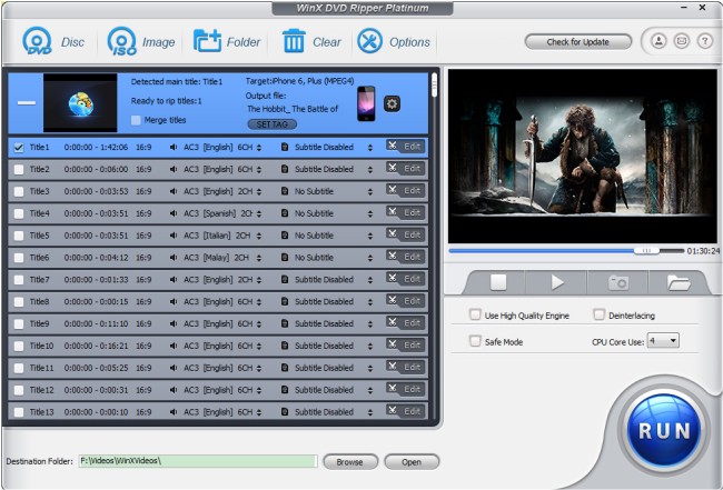 WinX DVD Ripper Platinum is the ultimate solution for ripping DVDs with 3 mouse clicks regardless of DVD copy protections and region locks.
