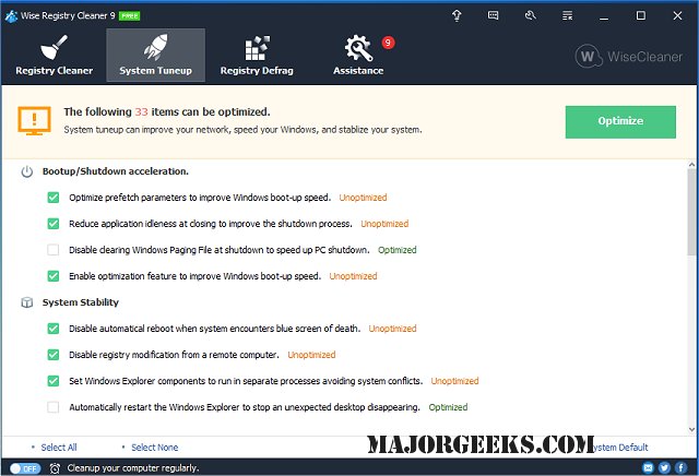 Wise Registry Cleaner scans the Windows registry and finds incorrect or obsolete information in the registry. It is one of many tools included in the Wise Care 365 free suite.