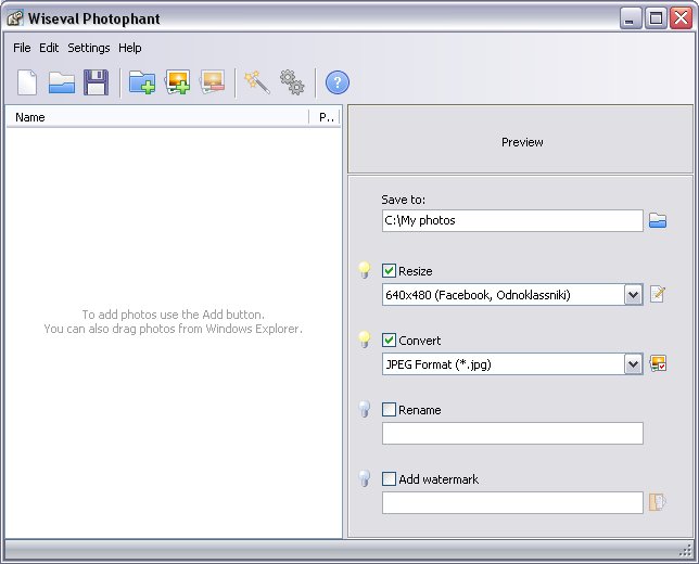 Wiseval Photophant is a free software for batch resizing, converting and renaming images or your digital photos from and to jpg, bmp, png and gif formats.