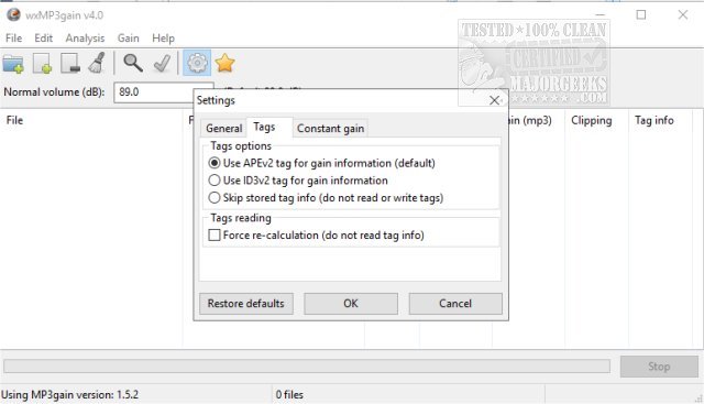You also have the option to set wxMP3gain to lower the gain automatically - this can prevent audio clipping, and utilize APEv2 or ID3v2 tags. It also allows overwriting of existing files.
