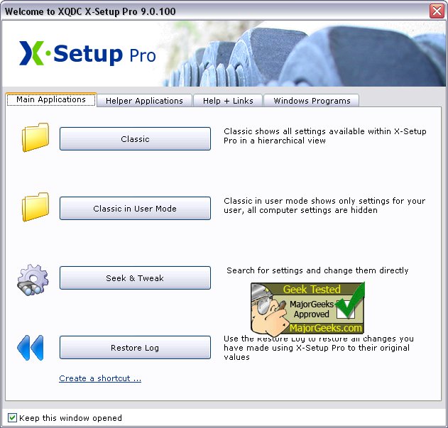 X-Setup Pro is the ultimate in system configuration or tweaking as some people would say. It covers all types of options and has many useful features - for more information please read the rest of this section or browse to http://www.x-setup.net/