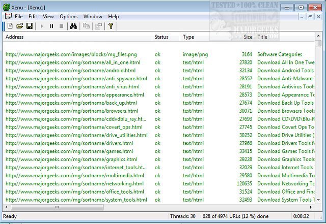Xenu's Link Sleuth will display a list of URLs which are updated continuously and can be sorted according to specific criteria. The UI is simple and straightforward and can help users understand how certain sites are structured.