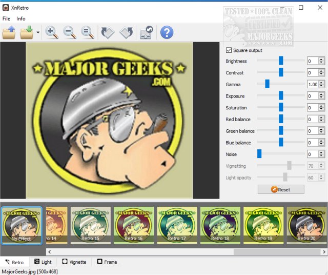 It comes with 20 color effects, 15 light effects, including bokeh and leak. There are also 28 different frame borders to choose from. Several adjustments are available, including contrast, gamma, saturation, vignetting, noise, and more. Additionally, XnRetor includes a built-in browse button, or you can drag n' drop your images for upload. It supports many different types of file formats like BMP, CIN, DCX, EMF, GIF, ICO, PCX, PIC, MTV, MIF, JPG, IMG, etc.