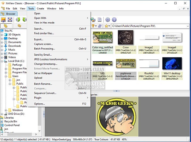 It lets you create the optimal defaults according to your needs and preferences, enabling you to work most efficiently. The integrated file operations, such as copying, moving, and creating directories and files, make XnView a universal tool for graphics.