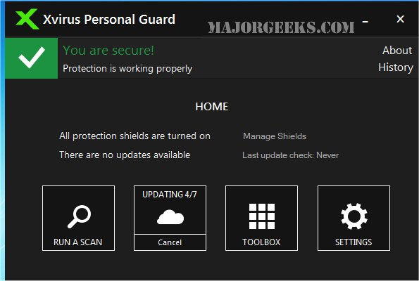 Xvirus Personal Guard is completely free, 100% compatible with other antivirus software and uses low computer resources so it will not bog your machine down while protecting you from malware in real time. It has a simple user interface and it will update itself automatically, so you don't have to worry if you are utilizing the latest update.