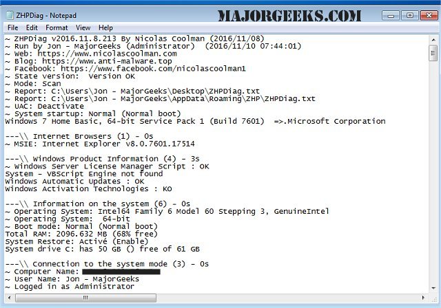 ZHPDiag is a free app that allows you to scan your machine and diagnose if any malware, trojans, etc., are present. Use ZHPLite for diagnostic report analysis.