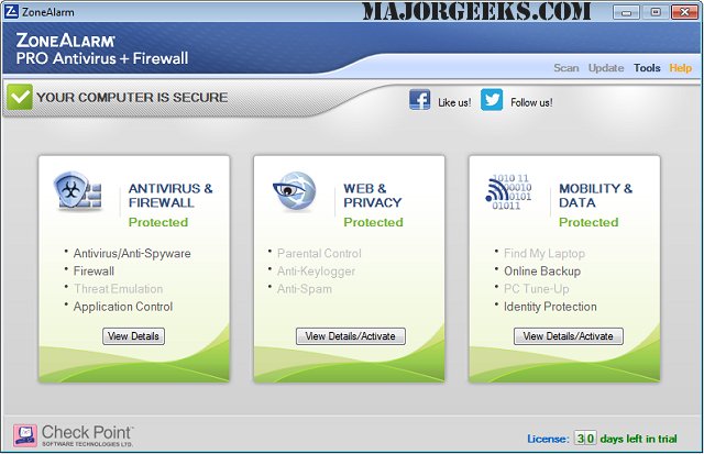 ZoneAlarm Free Antivirus + Firewall is an all-in-one free security that seamlessly integrates ZoneAlarm Antivirus with Firewall.