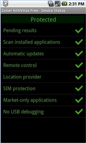 Zoner AntiVirus for Android Features: