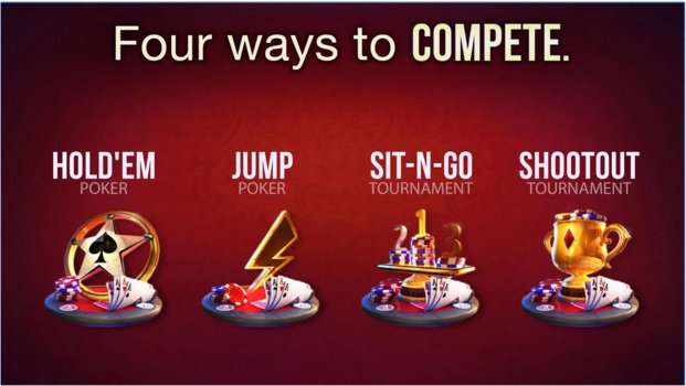Play casual Texas Hold ’Em or competitive Tournaments like Shootouts and Sit-N-Go.