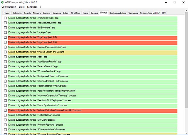 W10Privacy can display common Windows 10 security settings that can be activated as well as deactivated within the program.