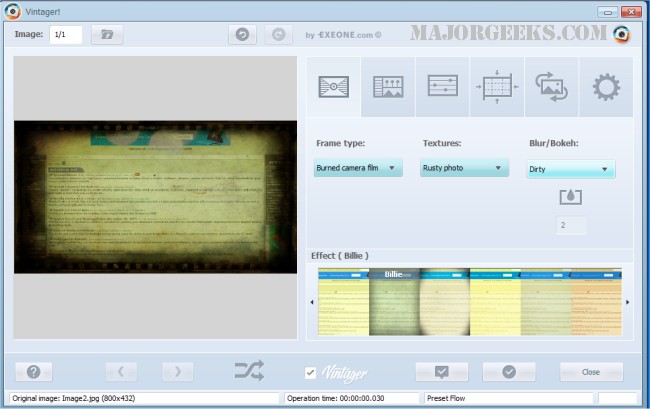 Vintager is a fun, creative and easy-to-use software that provides you with a number of special effects that can be applied to your photos to give them a retro/vintage style.