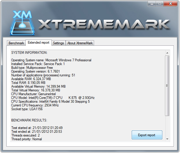XtremeMark will test the speed of your PC and in particular your CPU (Central Processing Unit) by executing a large amount of parallel calculations.