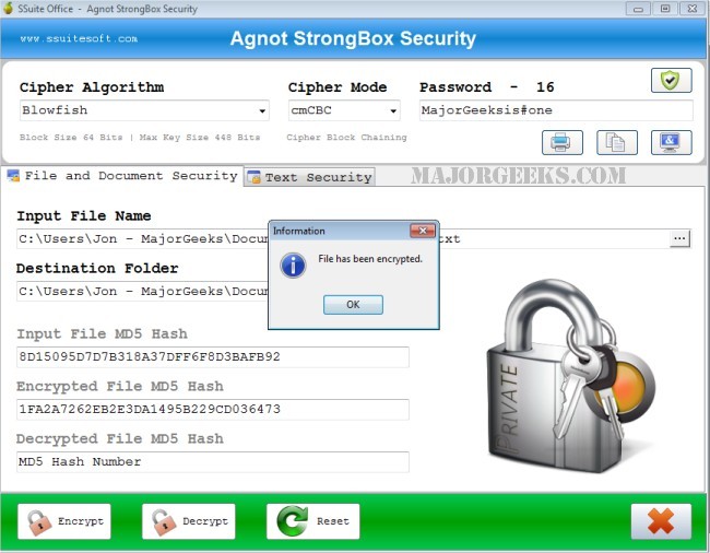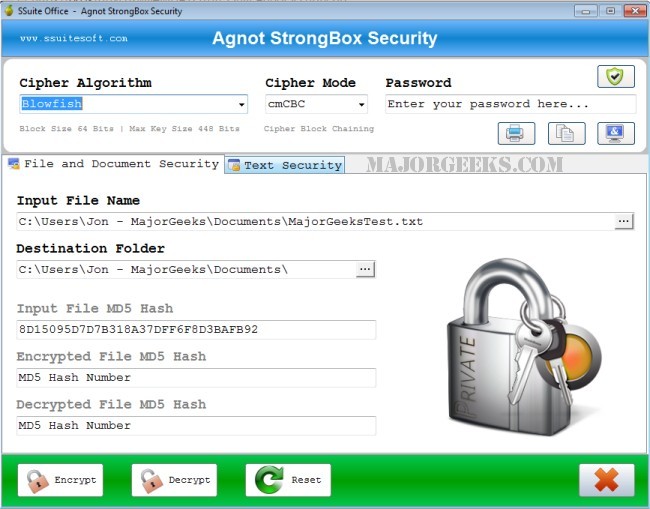 SSuite - Agnot StrongBox will easily secure any file, document, or text message using multiple industrial and military strength ciphers to ensure your information stays private.