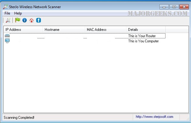 SterJo Wireless Network Scanner is a small tool that will scan your network allowing you to monitor all connected devices.