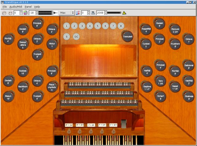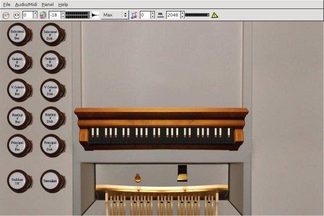 GrandOrgue is a sample based pipe organ simulator. When connected to MIDI keyboards and an audio system, it can accurately simulate the sound of a real pipe organ.