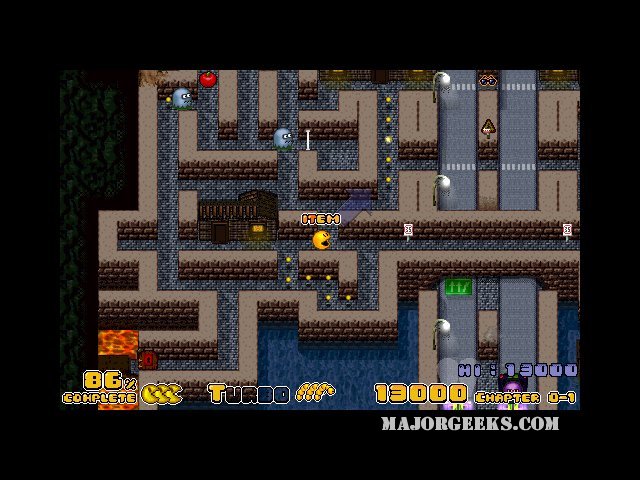PacMan Worlds is a Pac-Man knockoff with huge areas to cover as well as items and keys to unlock 3 (or maybe 4) mini games within.