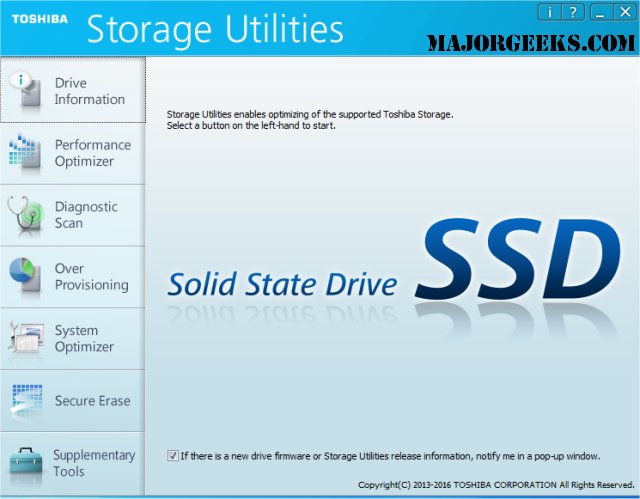Toshiba Storage Utilities provides you with an all-in-one management solution for Toshiba SSDs intended to optimize overall performance.