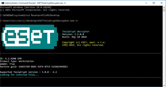 ESET TeslaCrypt Decryptor decrypts variants of the TeslaCrypt ransomware.