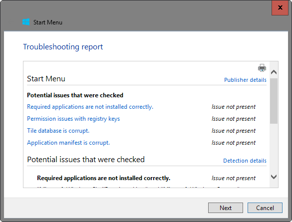 Microsoft Start Menu Troubleshooter