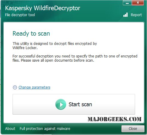 Kaspersky WildfireDecryptor decrypts the Wildfire Locker ransomware.