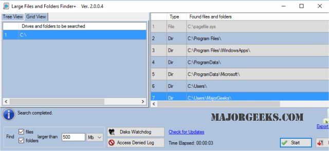 Large Files and Folders Finder+ can find large files and folders on all of your non-encrypted hard drives as well as any connected USB drives including smartphones and tablets.