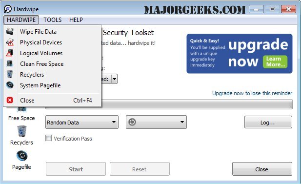 Hardwipe can be used to permanently erase, or hard wipe data on drivers and portable storage media to prevent information from ever being recovered.