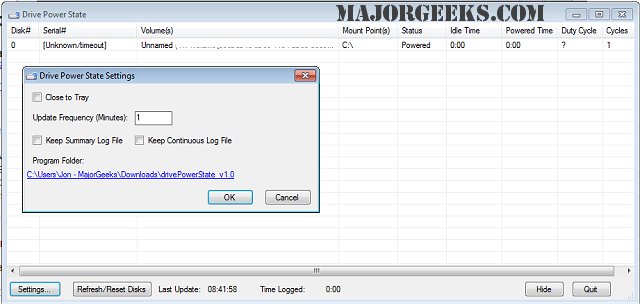 Drive Power State monitors and displays details about your PCs hard disk drives.