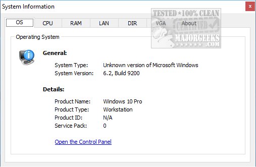 Mulder's System Information is an application to get system information including OS, CPU, RAM, LAN, directories, and video.