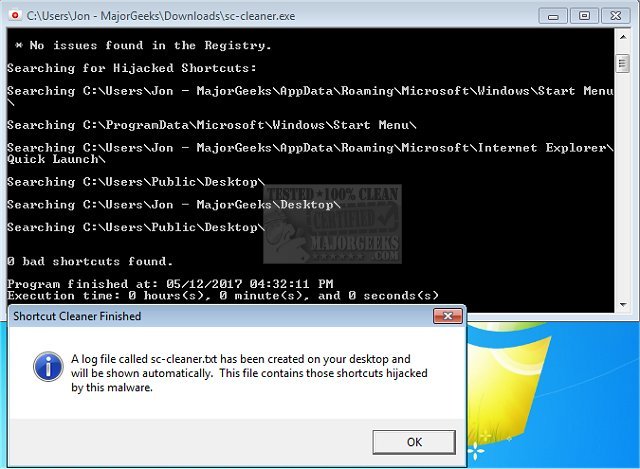 Shortcut Cleaner is a utility that will scan your computer for Windows shortcuts that have been hijacked by unwanted or malicious software.