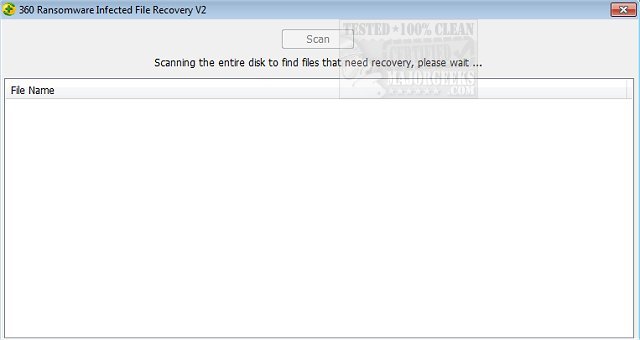 360 Ransomware Infected File Recovery scans your entire disk for files that have been targeted by ransomware, including WannaCry.