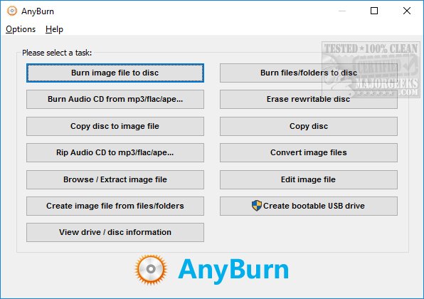 AnyBurn is a free CD, DVD, and Blu-ray burning app that can create and burn images, rip and burn audio, copy discs, and more.