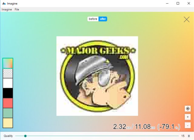 Imagine is an Open Source app that can compress JPEG and PNG files in batch with options for colors and quality.