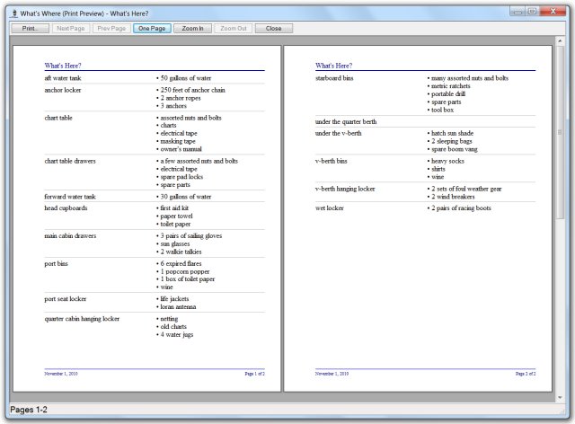 What's Where keeps track of your stuff in your boat, garage, storage space, home and more with a database and graphical layout.