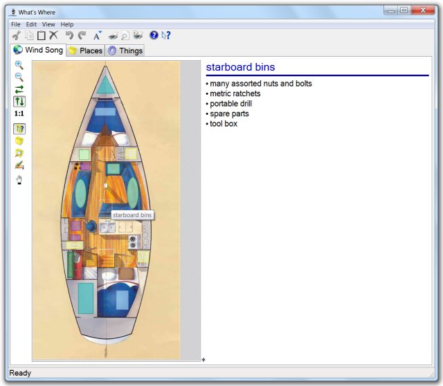 What's Where keeps track of your stuff in your boat, garage, storage space, home and more with a database and graphical layout.