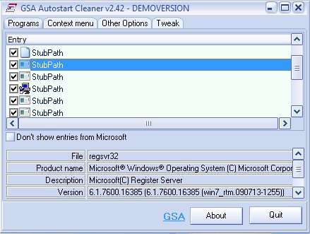 GSA Autostart Cleaner provides a view of all autostart entries and context menus and allows you to remove them for potentially quicker boot times.