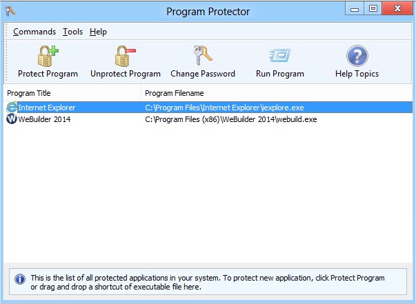 Program Protector can easily password protect any Windows application and you can password protect programs with a few clicks.