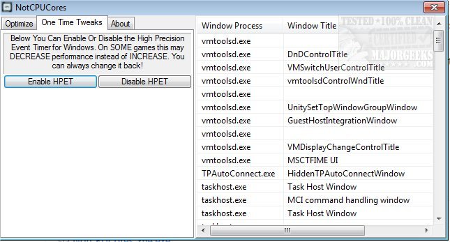 NotCPUCores provides a simple tool for optimization that can help with tweaking various system aspects that may be negatively impacting your gameplay.