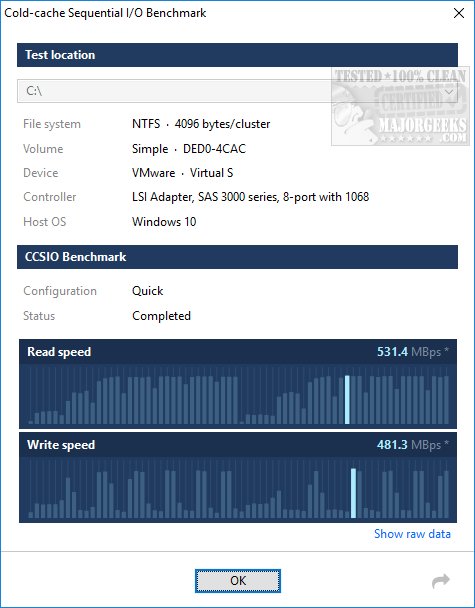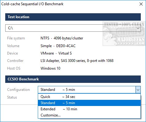 CCSIO Benchmark measures how fast your drives can read and write large files to and from a specified location.