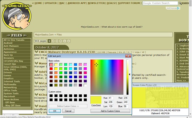 » Screen Color Picker permits you to pick a screen color and obtain the corresponding values.