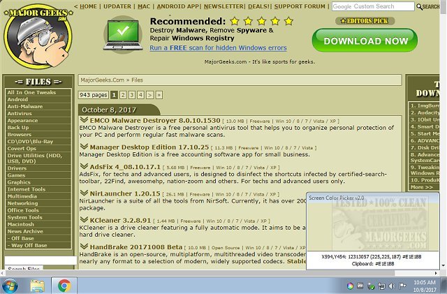 Screen Color Picker permits you to pick a screen color and obtain the corresponding values.