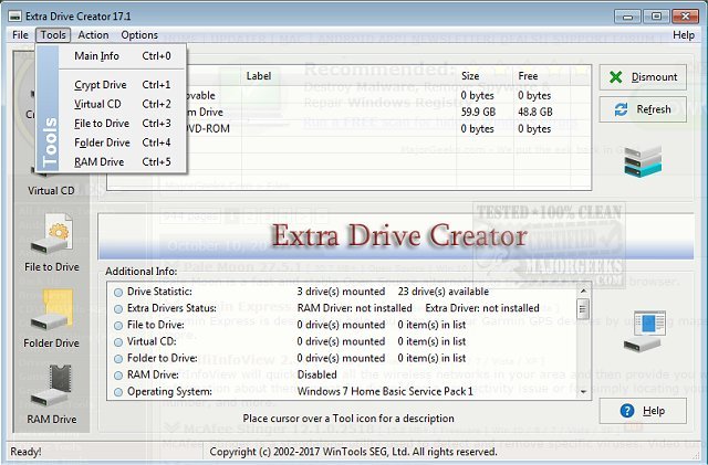 Extra Drive Creator Pro is a suite of tools to assist in creating various types of additional drives on your machine.