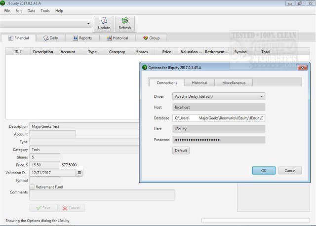 JEquity is a cross-platform tool that provides you with the ability to track your stock values.