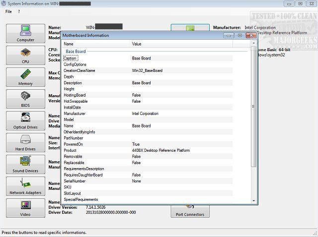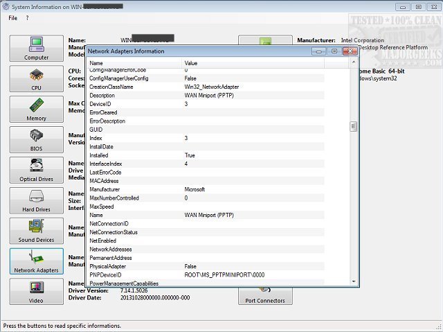 Sysinfo is a comprehensive tool that provides detailed information about different sectors of your Windows machine.
