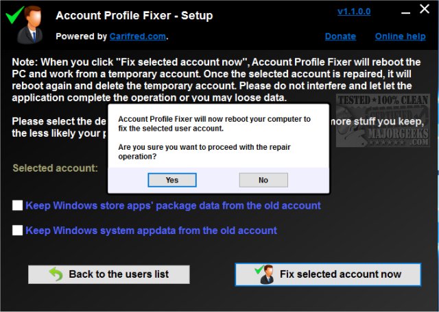 Account Profile Fixer was created to fix account profile related issues which can not be repaired without creating a new account.
