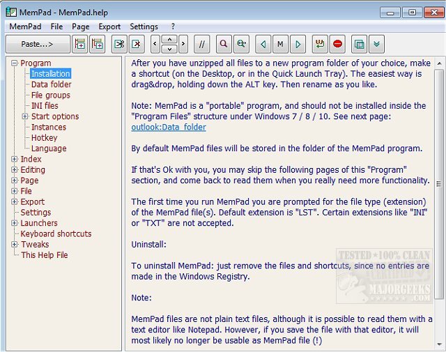 MemPad is a portable note-taking and plain text outliner featuring a structured index.