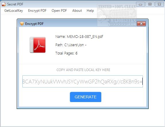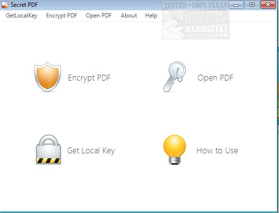 Secret PDF allows you to encrypt a PDF document with AES encryption and random algorithm technology that requires a key to open.