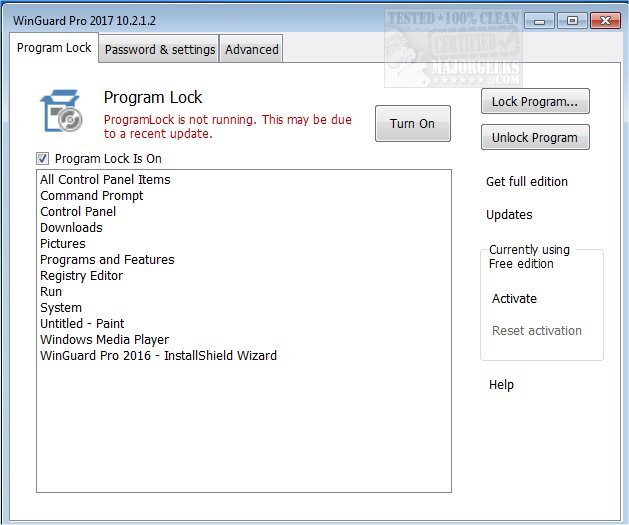 WinGuard Pro secures your computer by password protecting your Windows applications, programs and EXE files.