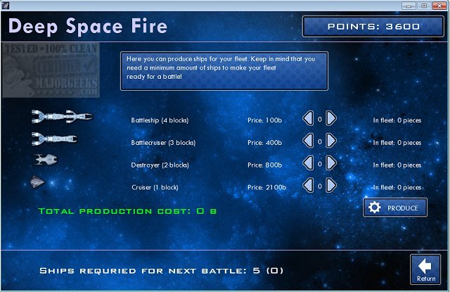 Deep Space Fire is a fun strategy game based on the Milton Bradley Battleship game. Build up your space fleet and wage war against the machine in ten separate campaigns